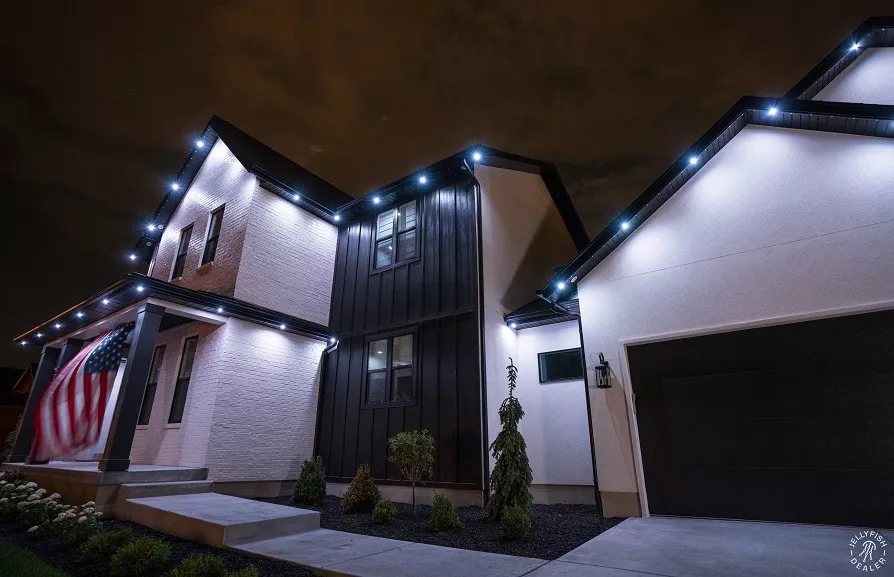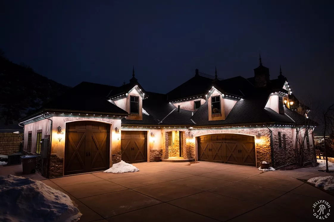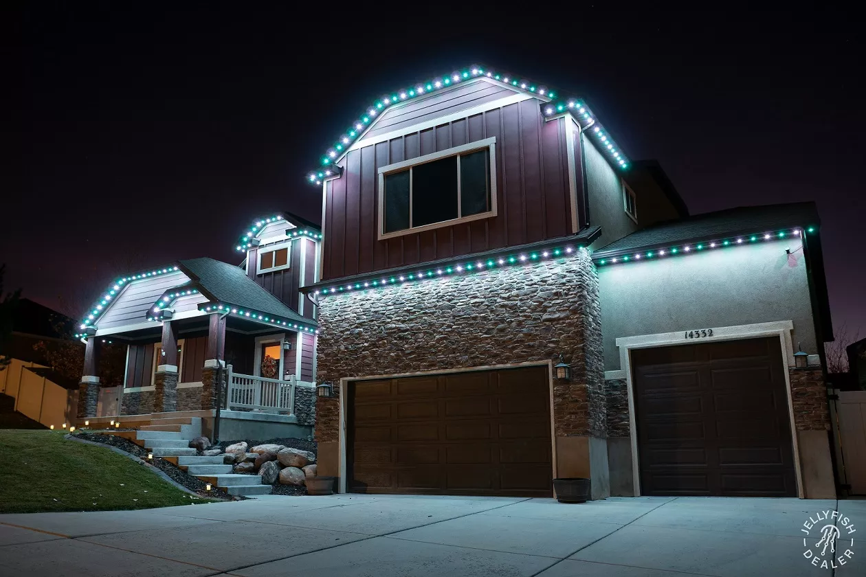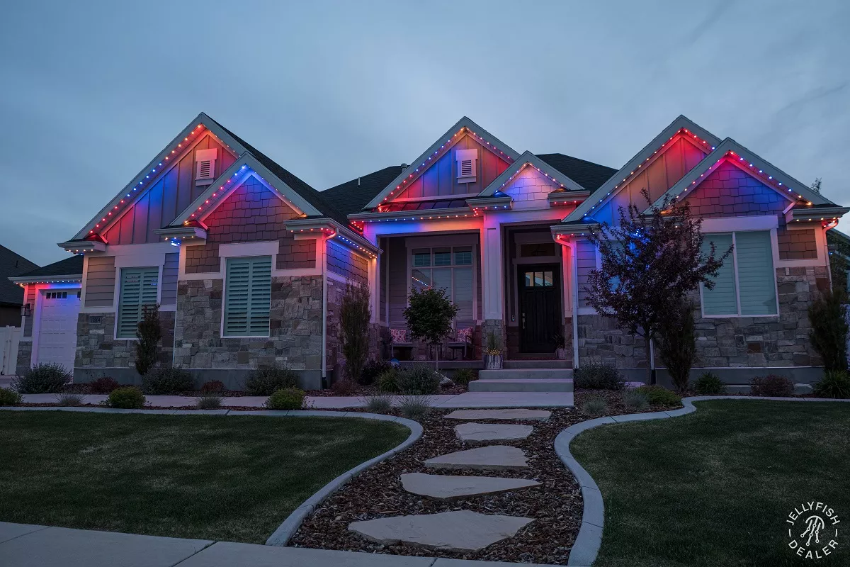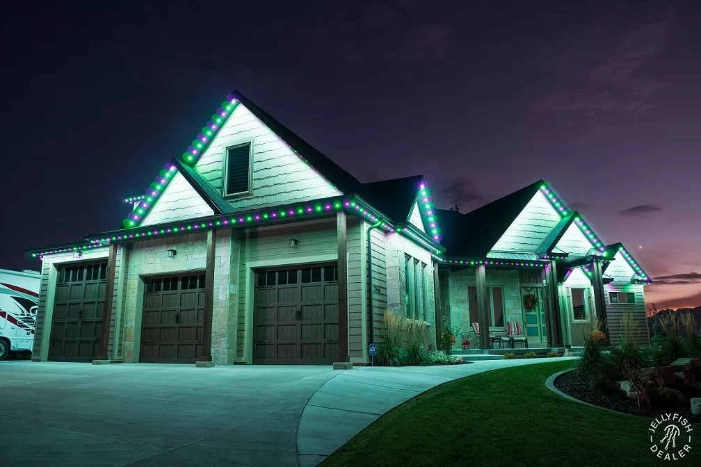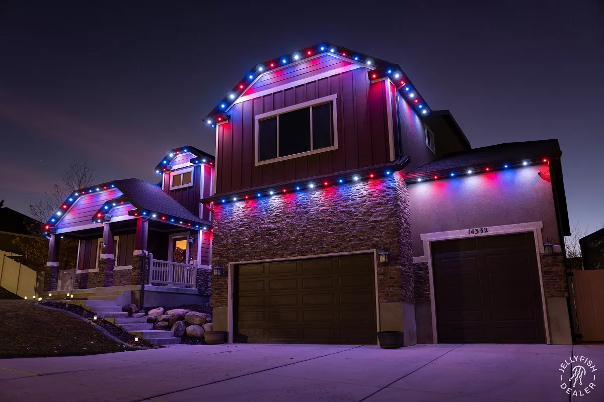 JellyFish Lighting is an advanced, permanent LED track and landscape system that seamlessly blends into your eaves and exterior architecture, offering vivid, color-changing effects and beautiful whites. With individually addressable LEDs and a powerful app, you can design your own patterns, set daily and weekly timers, and schedule calendarโbased events for holidays, gameday, and more.