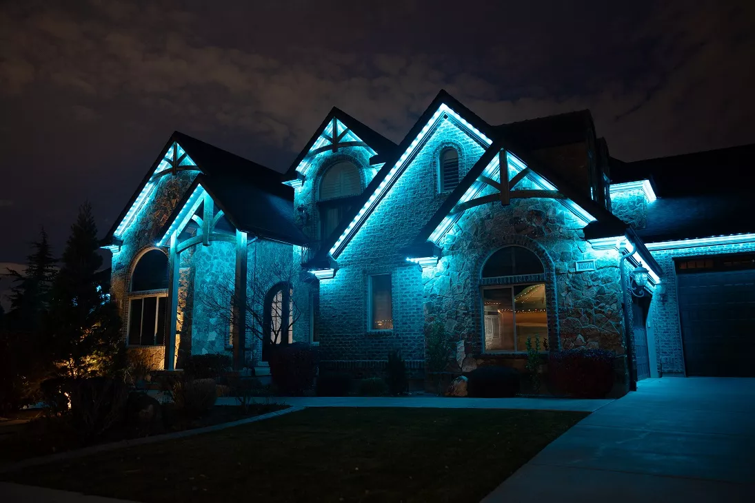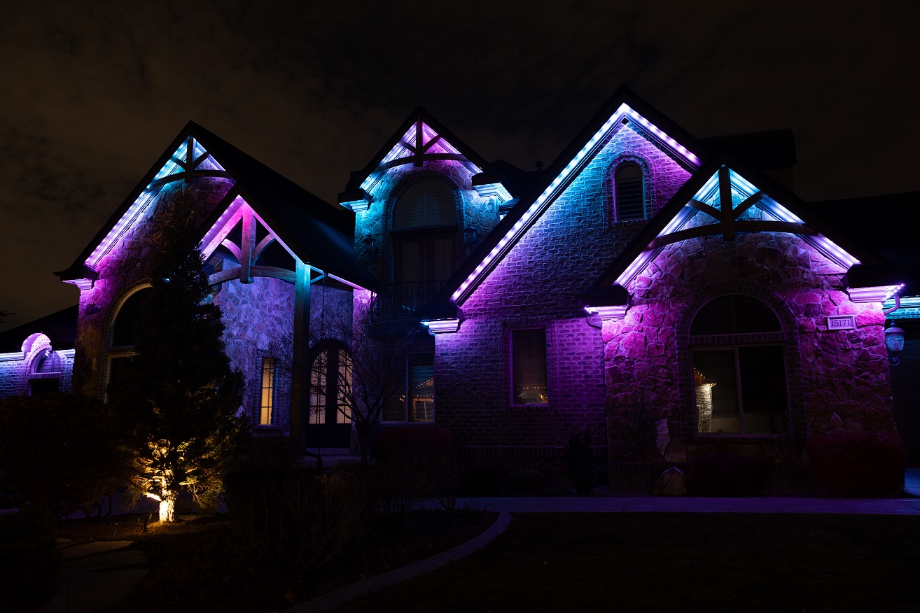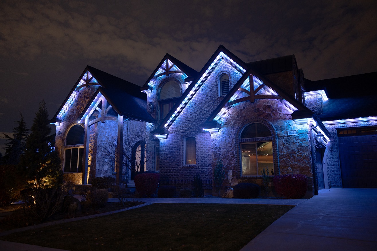 Our process starts with a professional consultation to map your eaves, measure runs, and determine the best power and controller placement. We discuss goals like accent, security, holiday scenes, and landscape lighting, then craft a full-service solution.
